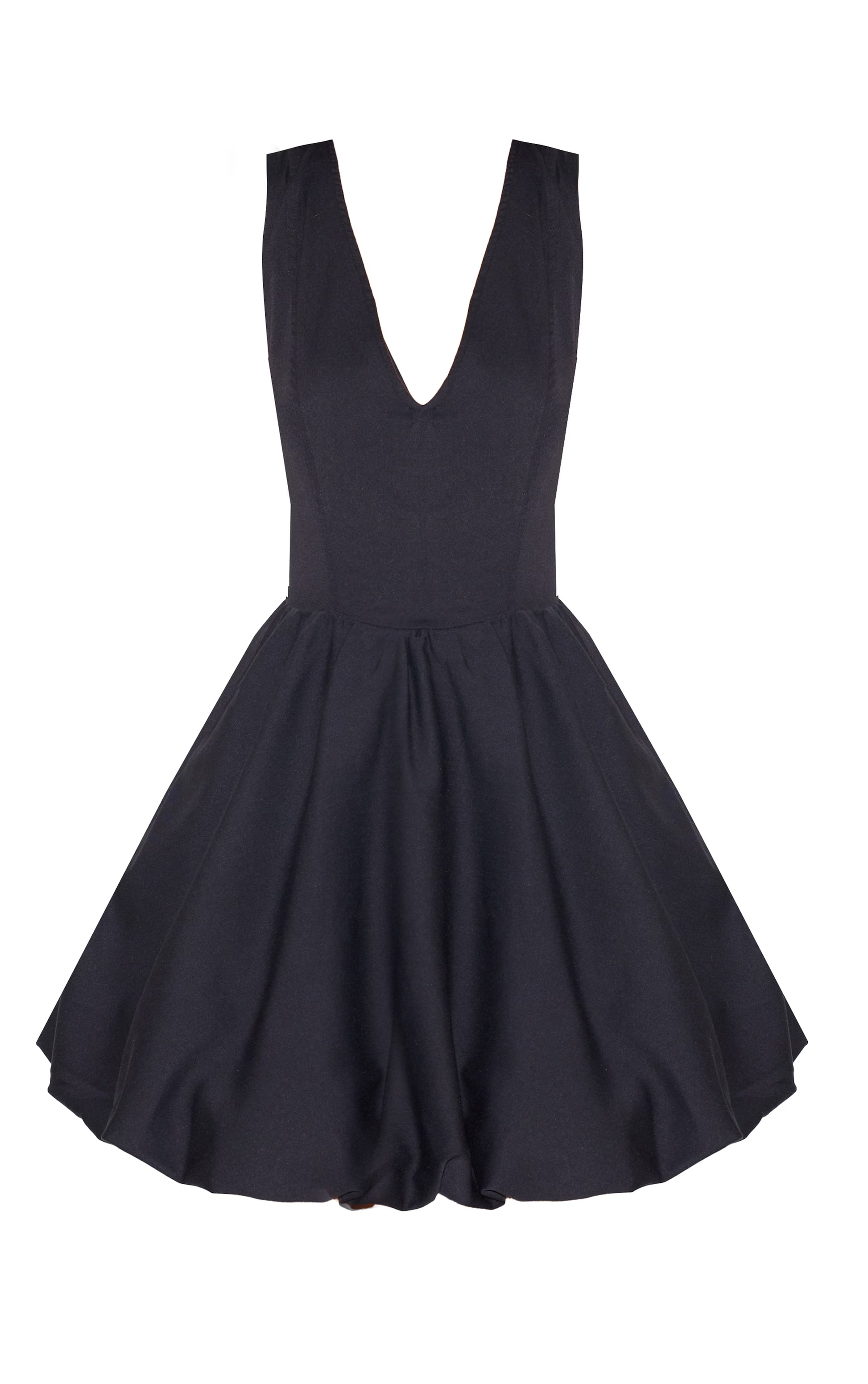 This black tailored mini dress offers a modern take on after-dark dressing. The V-neckline sculpts the décolletage, whilst the carefully considered puffball silhouette introduces a touch of volume and structure. Crafted in a black hue, this piece provides a versatile base for accessorising; consider pairing with delicate chain necklaces from our jewelry collection to elevate the ensemble.