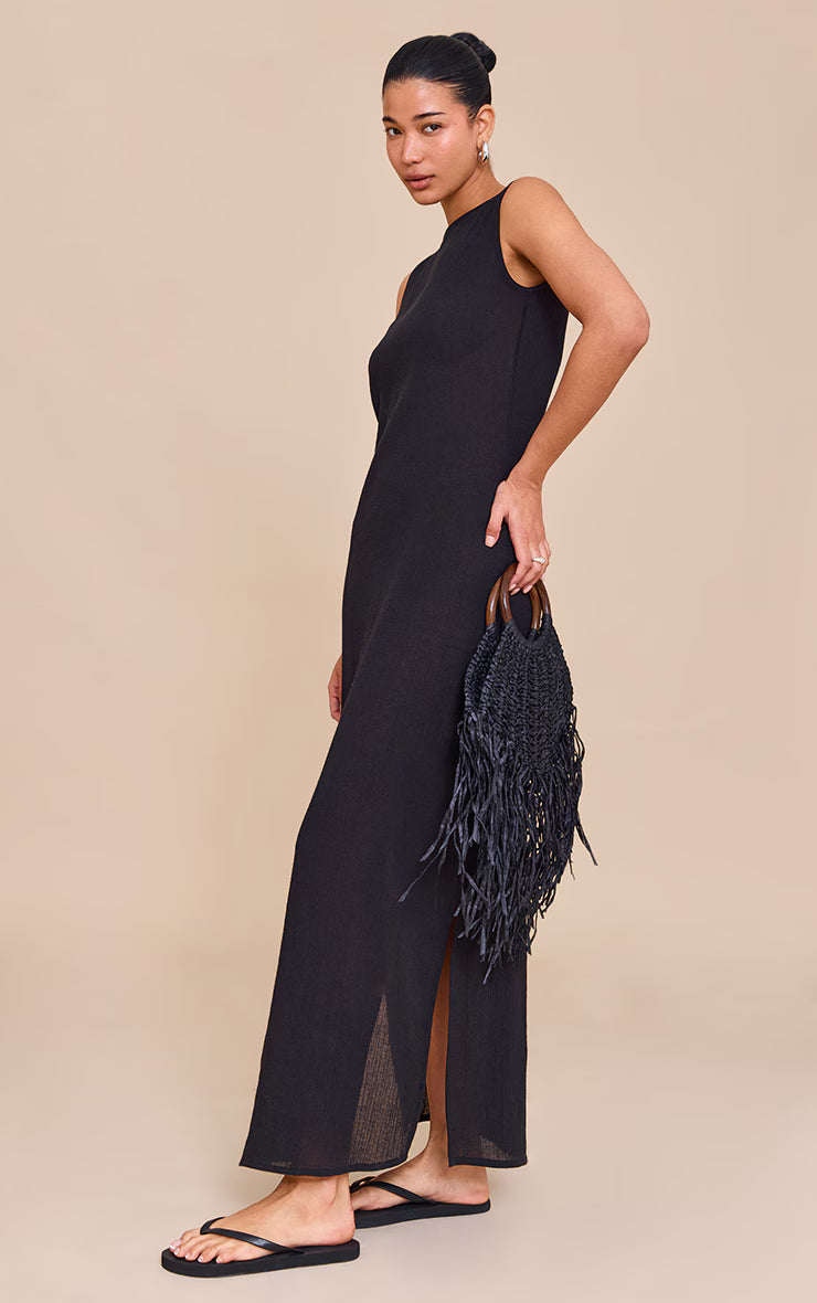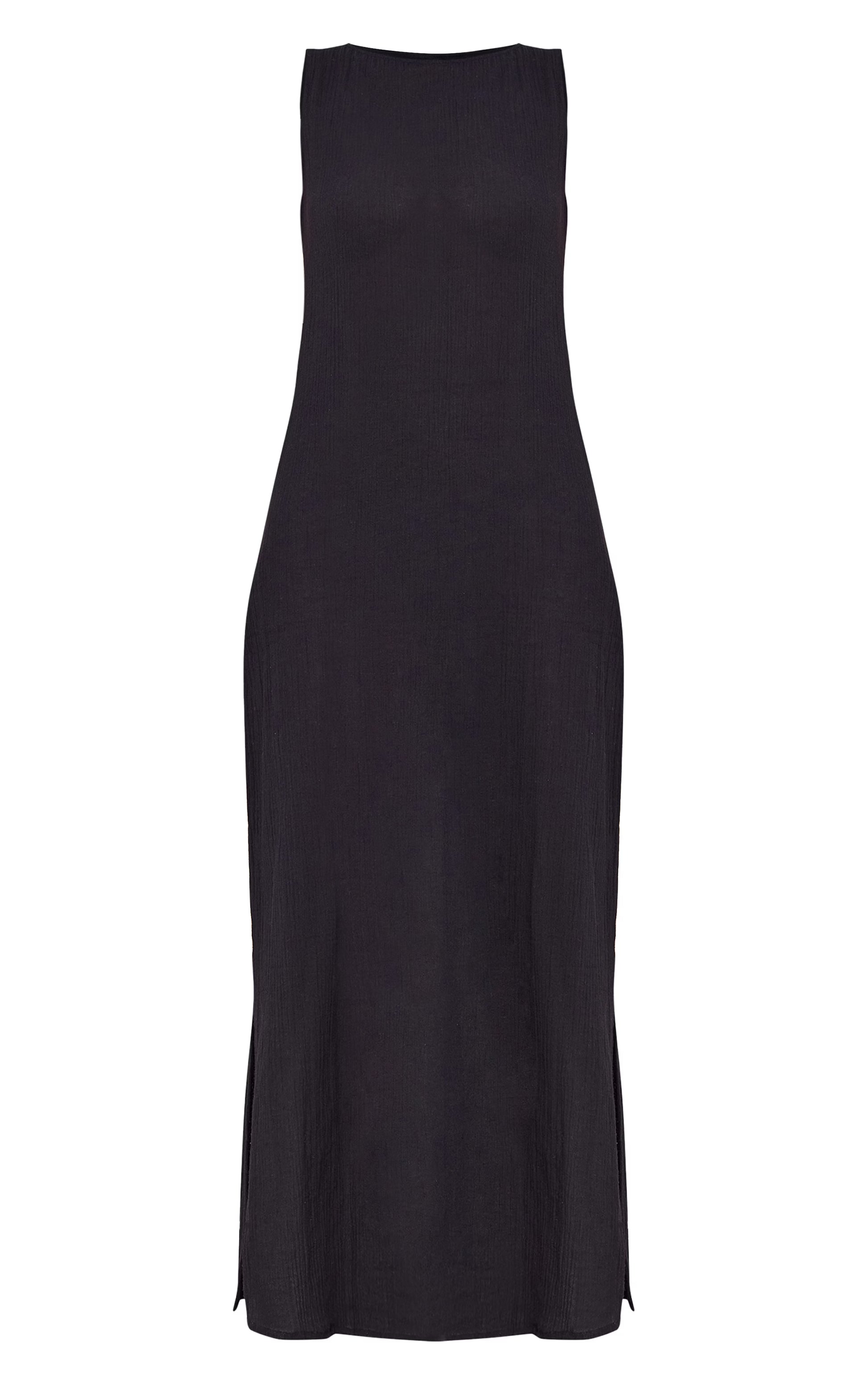 Keep it chic and effortless with this black cheesecloth sleeveless midaxi dress. Brought to you in breathable black cheesecloth material with a sleeveless design and relaxed midaxi fit, this piece is a summer staple. Pair this dress with flat sandals and a statement bag for a look like no other.