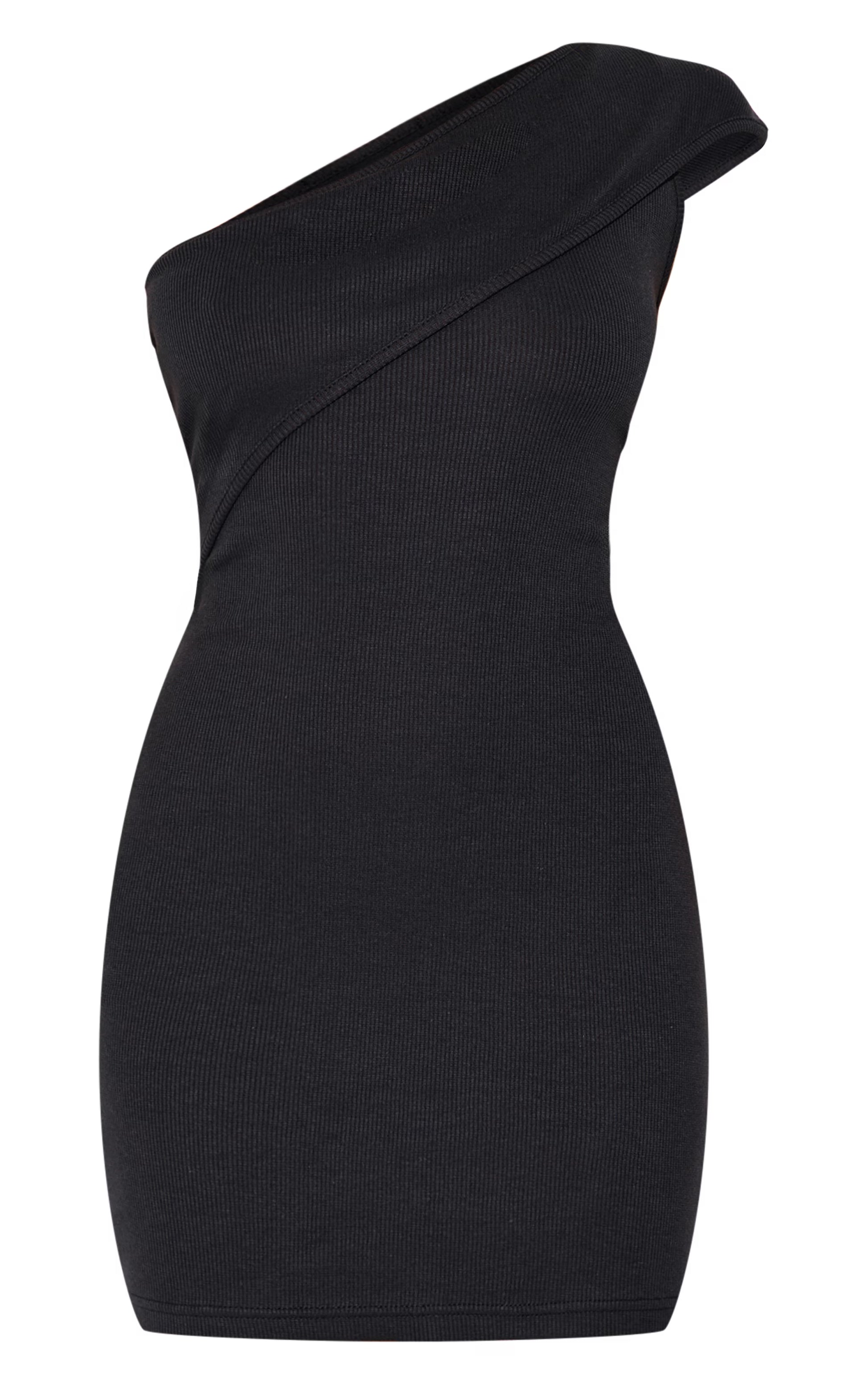 Black Rib Fold One Shoulder Mini Dress