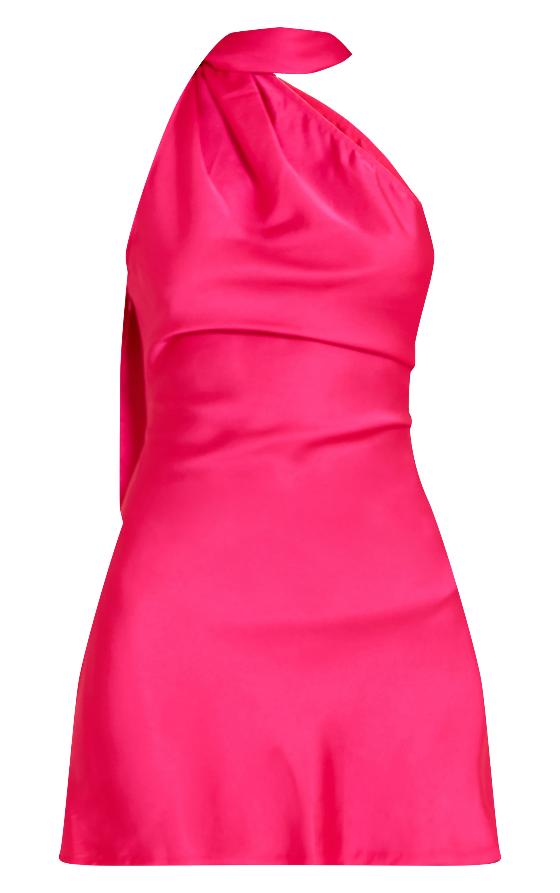 Channel a confident aura with a distinctive design. The pink satin scarf detail shift dress commands attention with its striking one-shoulder neckline. A dramatic scarf detail drapes elegantly from the shoulder, adding an artful flow. Its refined shift silhouette offers a relaxed yet polished mini length, perfect for making an entrance at any evening event. Pair this stand-out piece with barely-there stiletto heels and a sleek clutch bag, adding sharp minimal jewelry to complete a truly artful aesthetic.