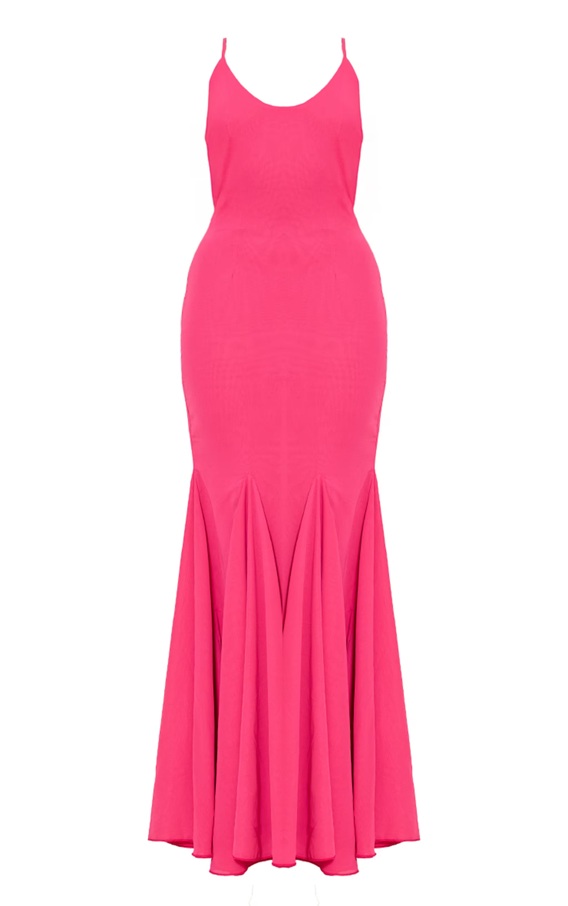 Add a pop of color to your eveningwear collection with this fuschia chiffon scoop neck cowl back sleeveless maxi dress. Crafted from vibrant pink material, this dress has a chic cowl neckline, fitted upper and a flowing maxi length skirt. For an elevated look, team it with strappy heels and gold jewelry.