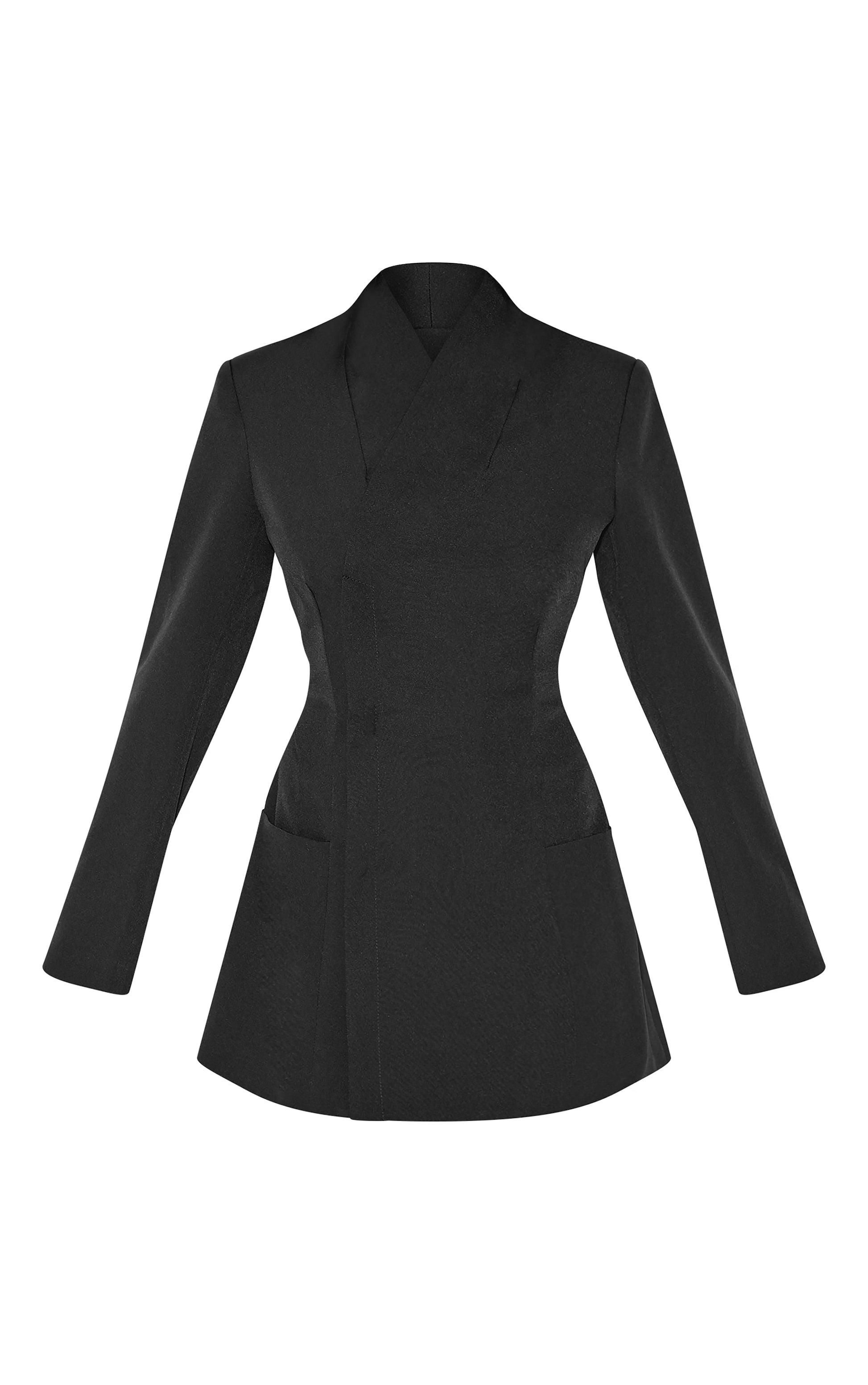 Black Woven Collarless Blazer Dress