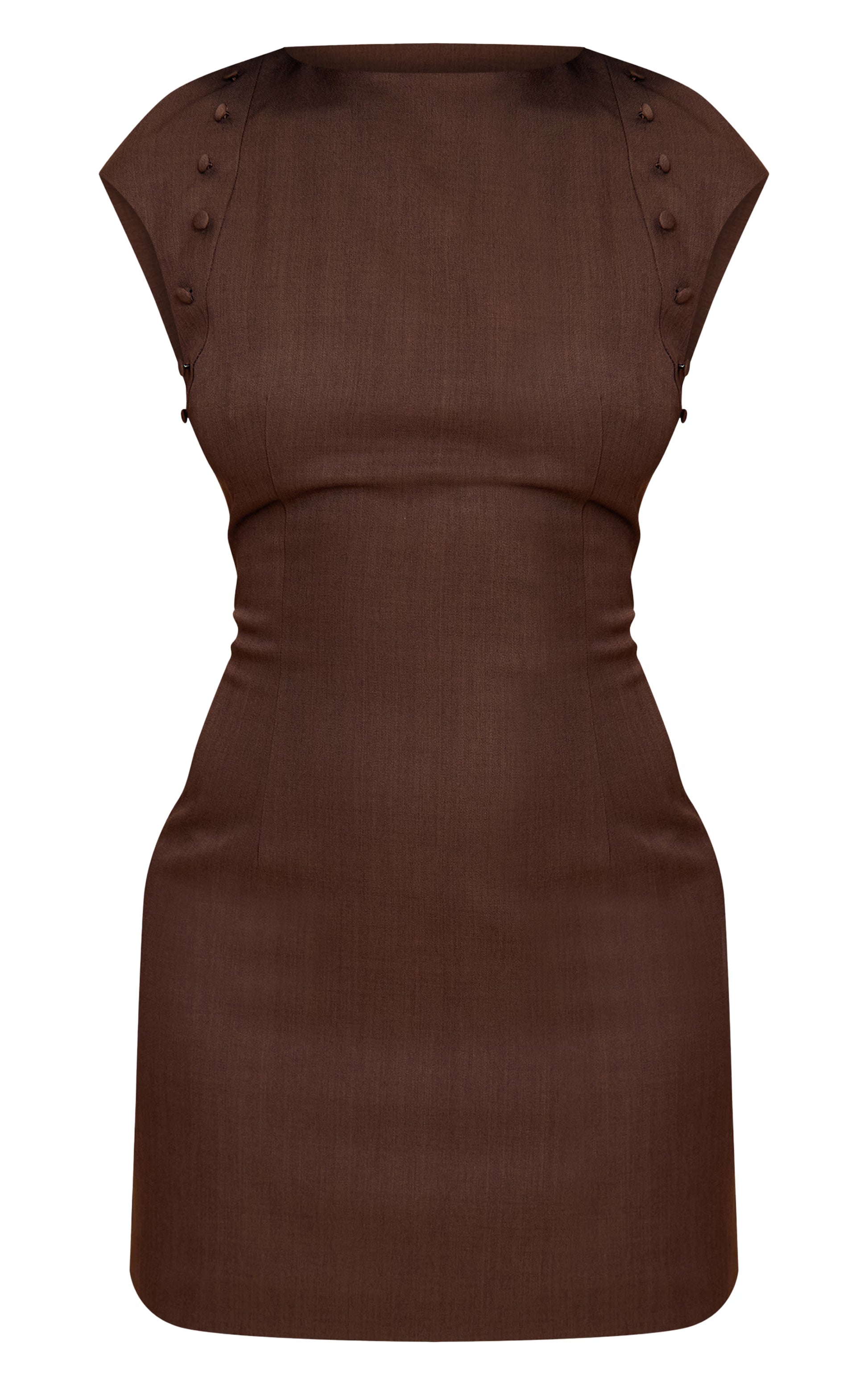 Chocolate Woven Button Detail Cap Sleeve Mini Dress