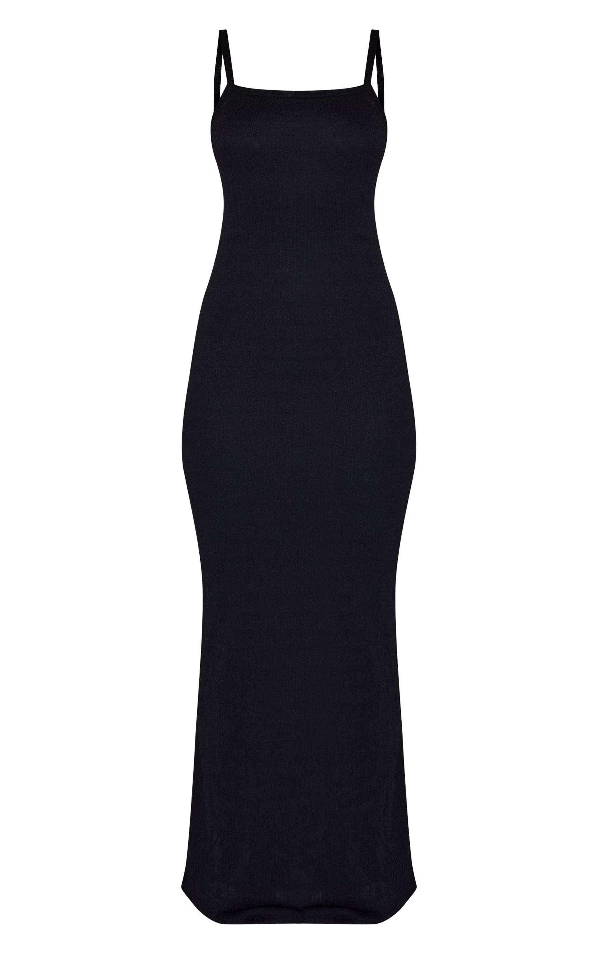 Black Textured Scoop Neck Sleeveless Maxi Dress