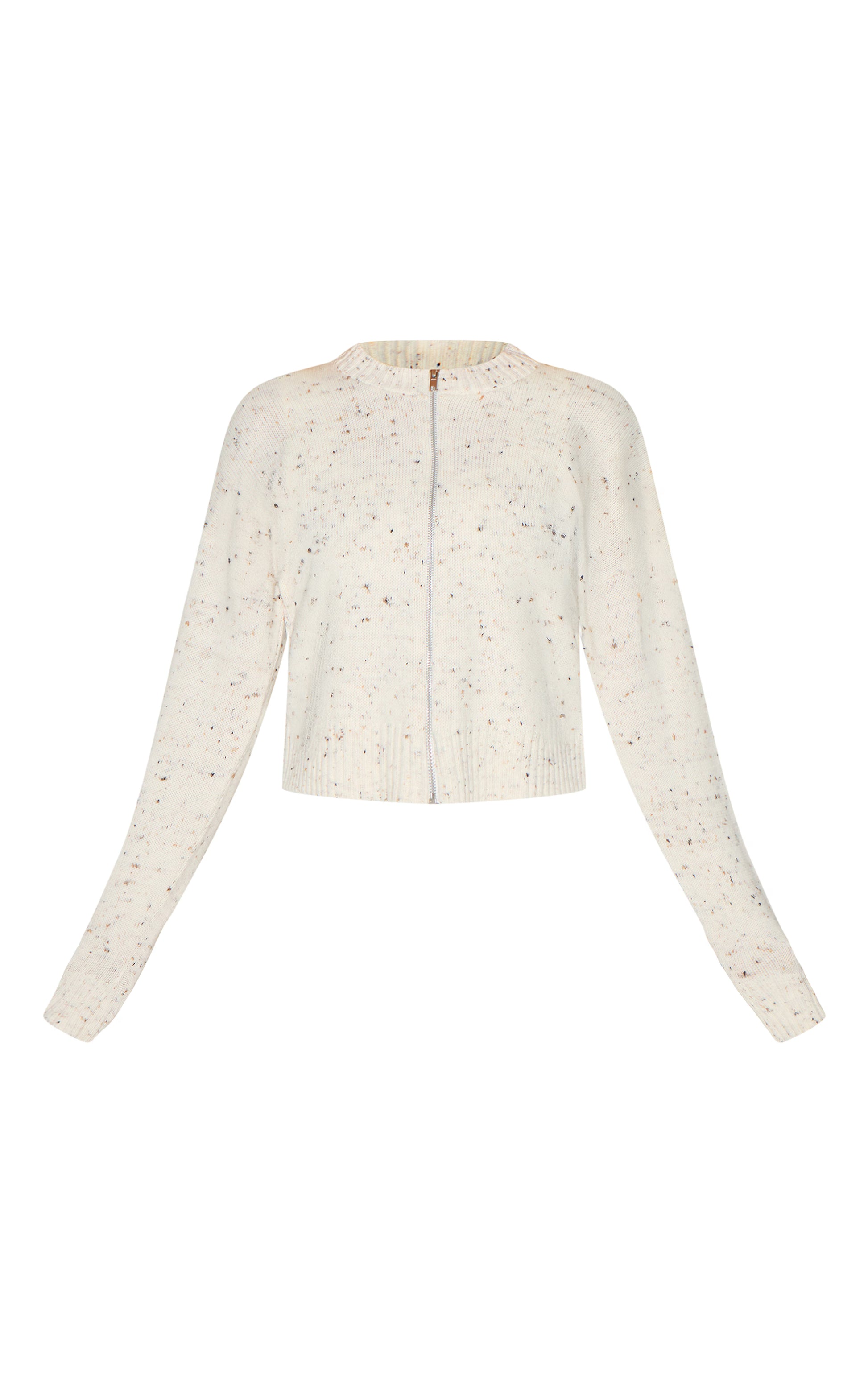 The nuanced textures of this cream space dye knit elevate a classic cardigan silhouette. Crafted for comfort without sacrificing style, the zip-up fastening allows for versatile styling options. The unique space dye effect introduces a subtle dimension to your knitwear collection. Pair it with high-waisted tailored pants from our bottoms category for a considered daytime ensemble, effortlessly bridging comfort and considered design.