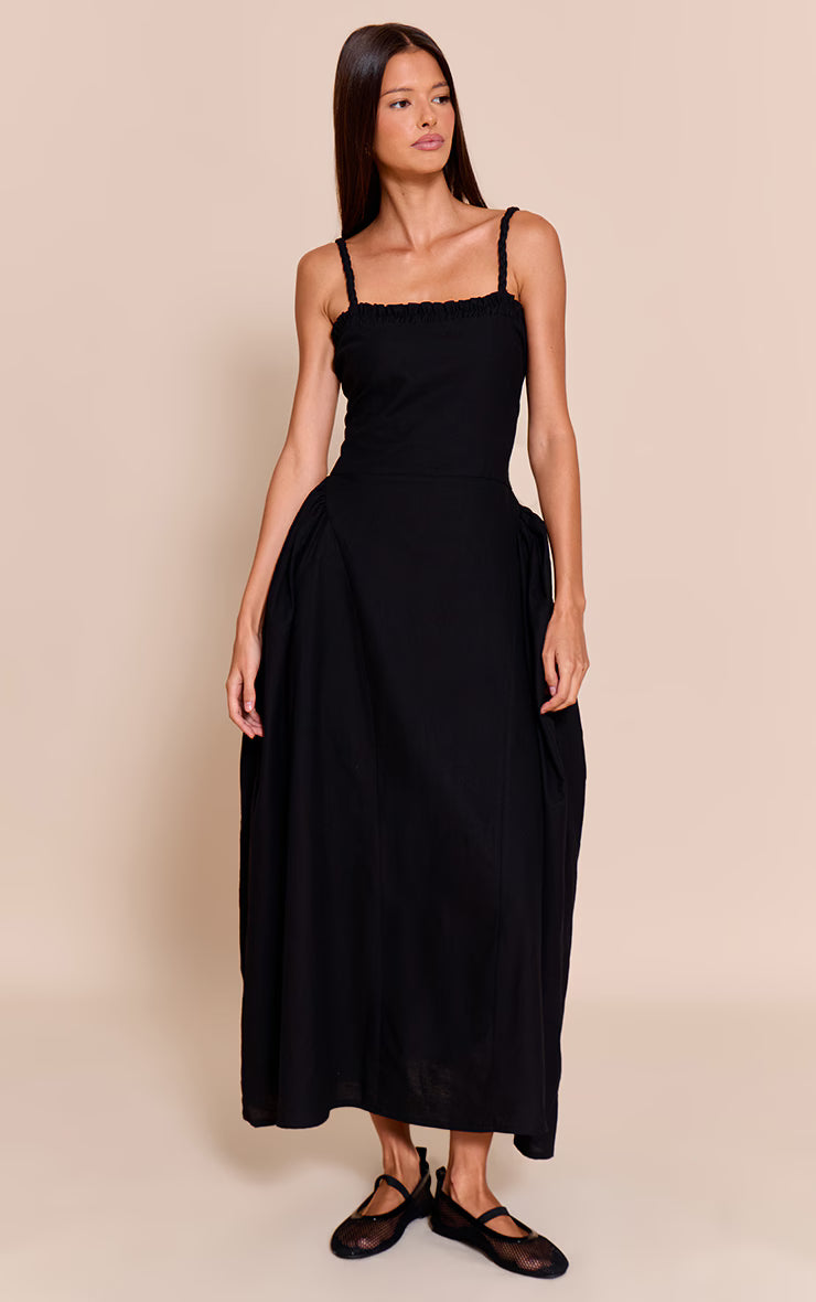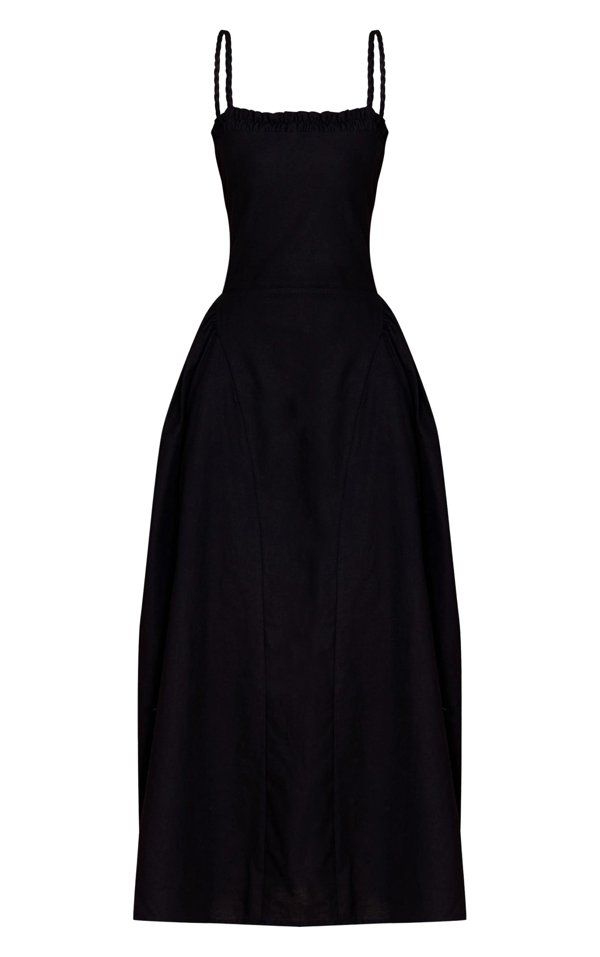 Turn heads in the black braided v waist midaxi dress, designed to sculpt and flatter. Featuring a braided waist detail that draws the eye and adds texture, this dress combines simplicity with statement. The midaxi length makes it a versatile piece for day-to-night dressing. Style with gold accessories and heels for instant impact.