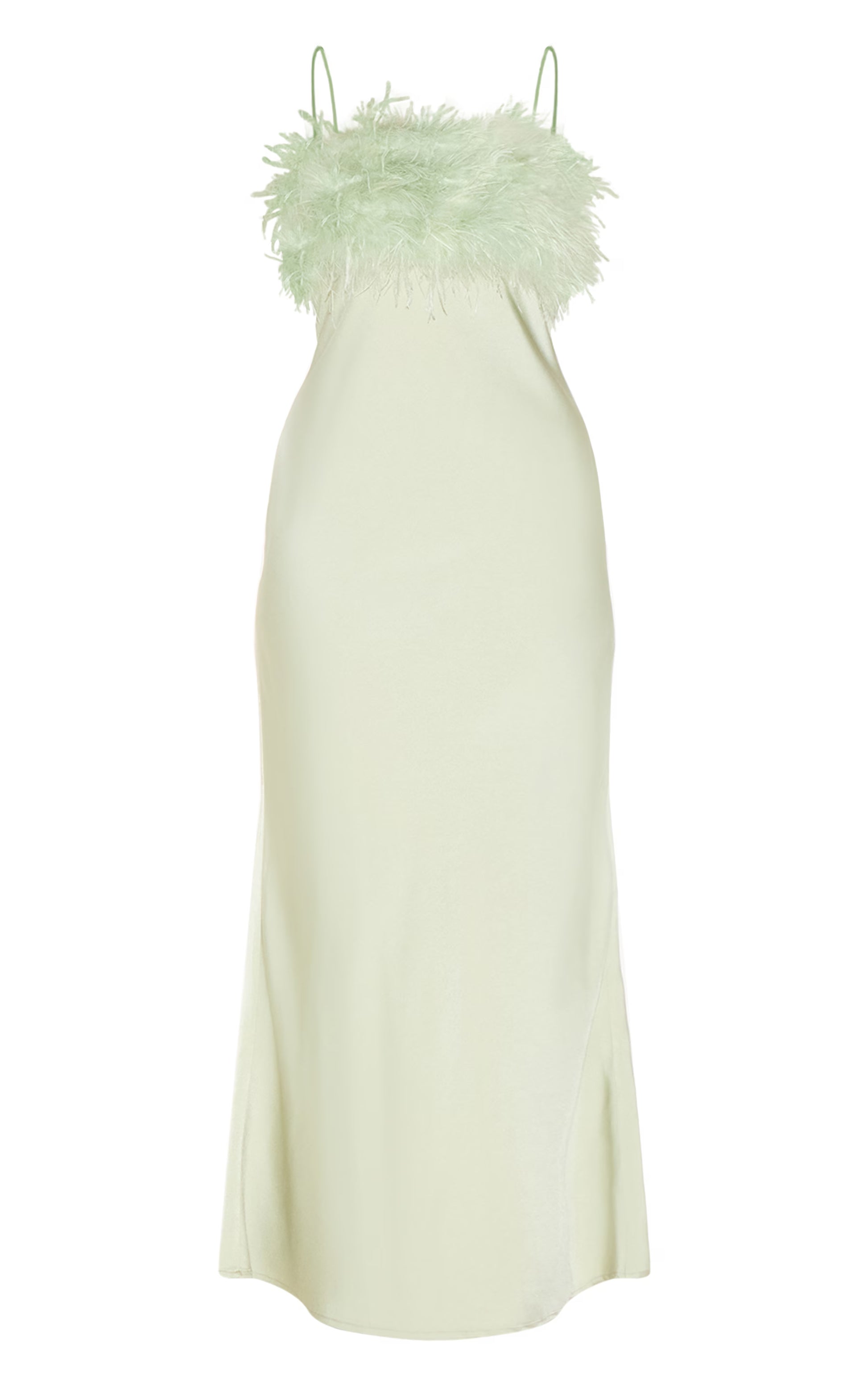 Bring all the drama with this sage satin feather bust detail strappy maxi dress. Crafted with soft satin and finished with a feather bust detail, this dress is the perfect piece for your evening occasions this season. Simply style with pointed toe heels and minimalistic jewelry for a look that's bound to turn heads.