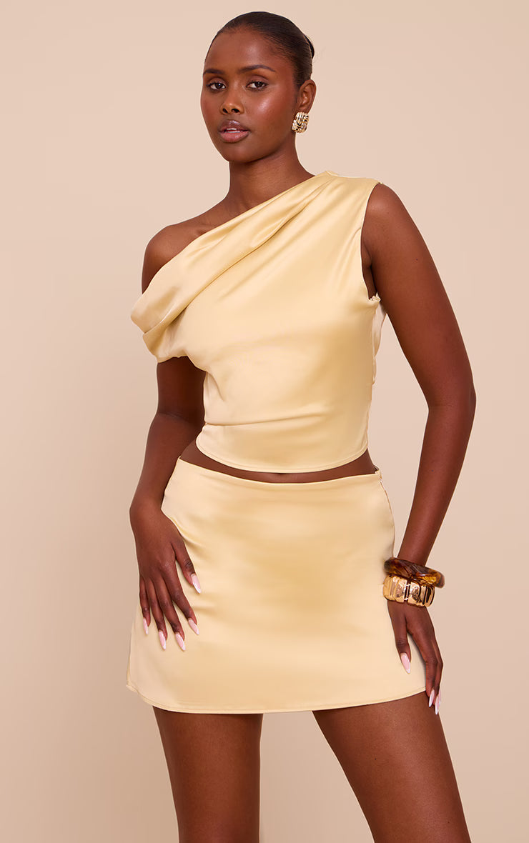 Lemon Satin Mid Rise Floaty A Line Mini Skirt