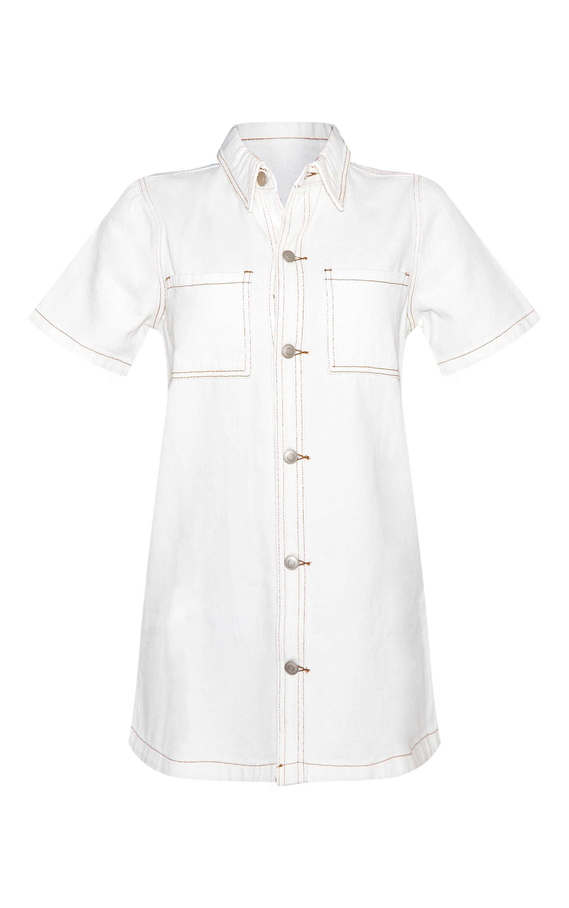 Opt for statement simplicity in the white contrast stitch denim shirt dress. Made from crisp white denim fabric with contrasting black stitch detail, this shirt dress offers a structured silhouette and standout finish. Pair with statement accessories and a pair of heels for those weekeend plans and beyond.