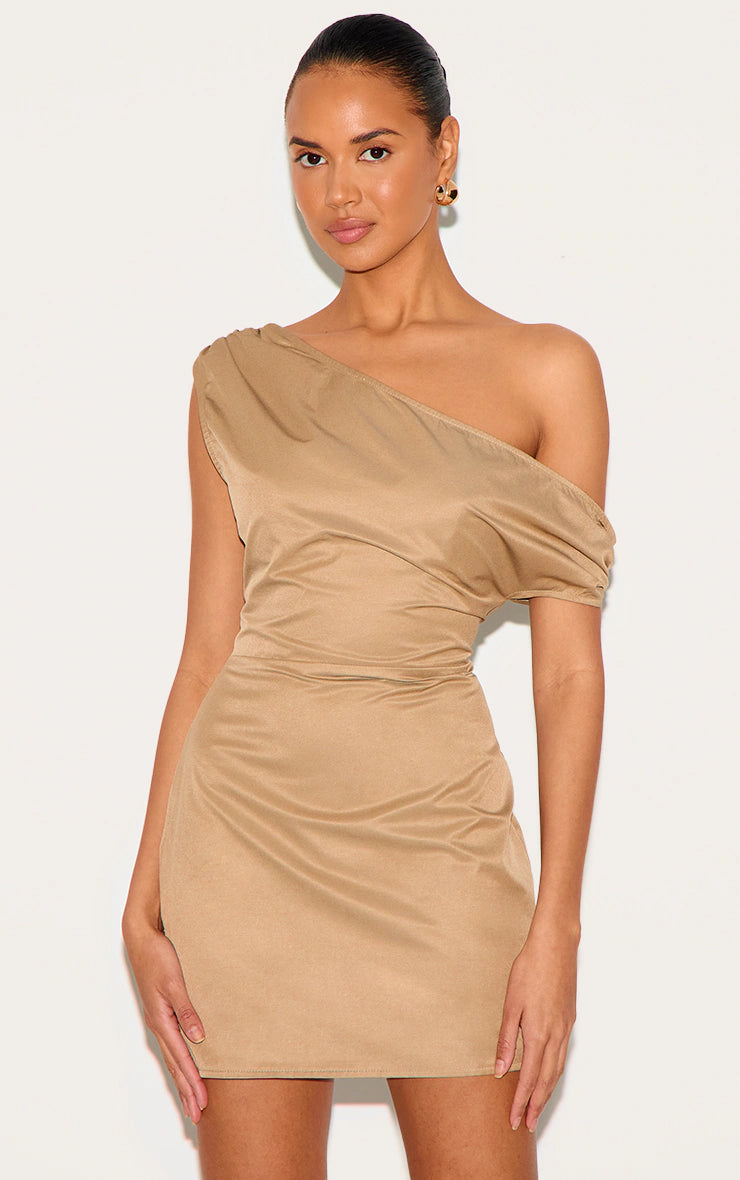 Beige Woven Asymmetric Cup Detail Mini Dress