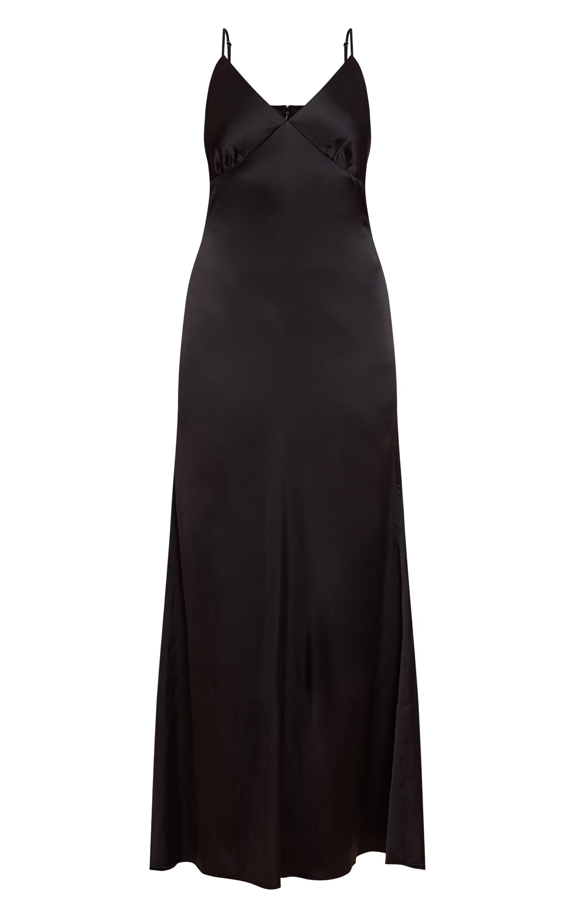 Feel your best in the black satin strappy maxi dress. Cut from glossy satin with slender straps and a fluid silhouette, this piece offers timeless elegance. Style it with gold accessories and a sleek heel for a statement evening look.