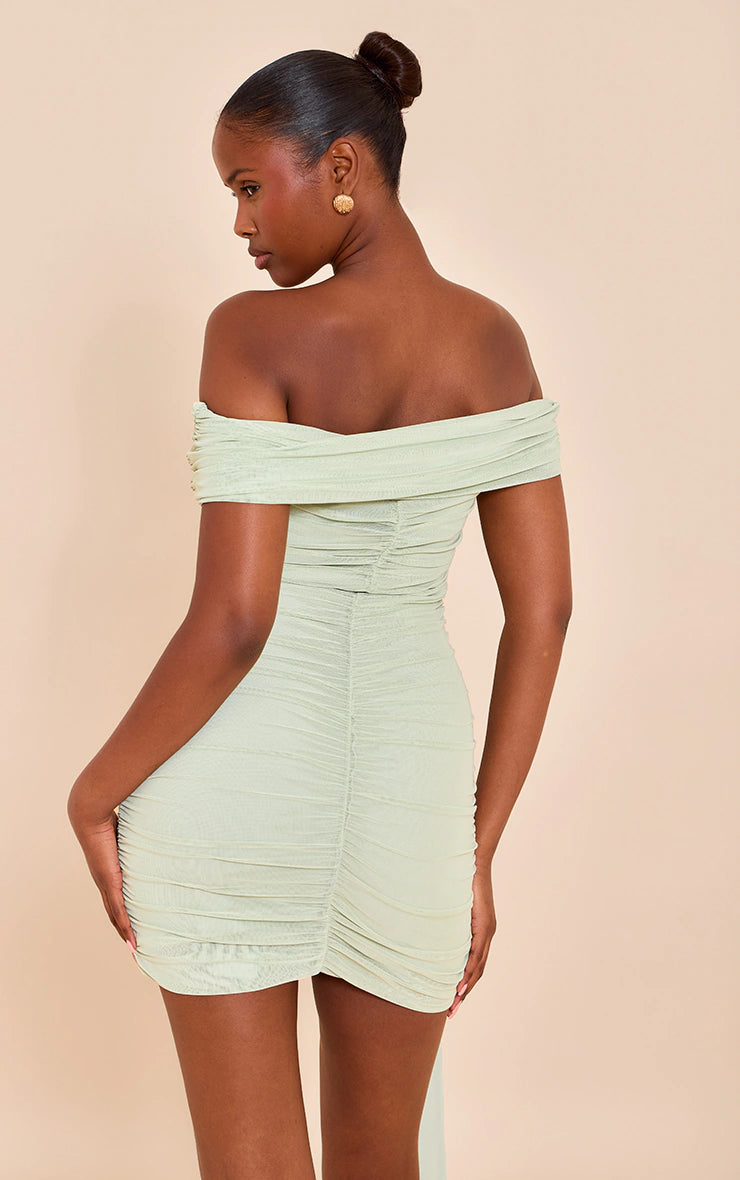 Feel instantly chic in this pale lime mesh lined bardot mini dress. Brought to you in a pale lime lined mesh material with an abstract print design and a long sleeve fit. Team this mini dress with a pair of heels and gold accessories to complete the look we are loving right now.